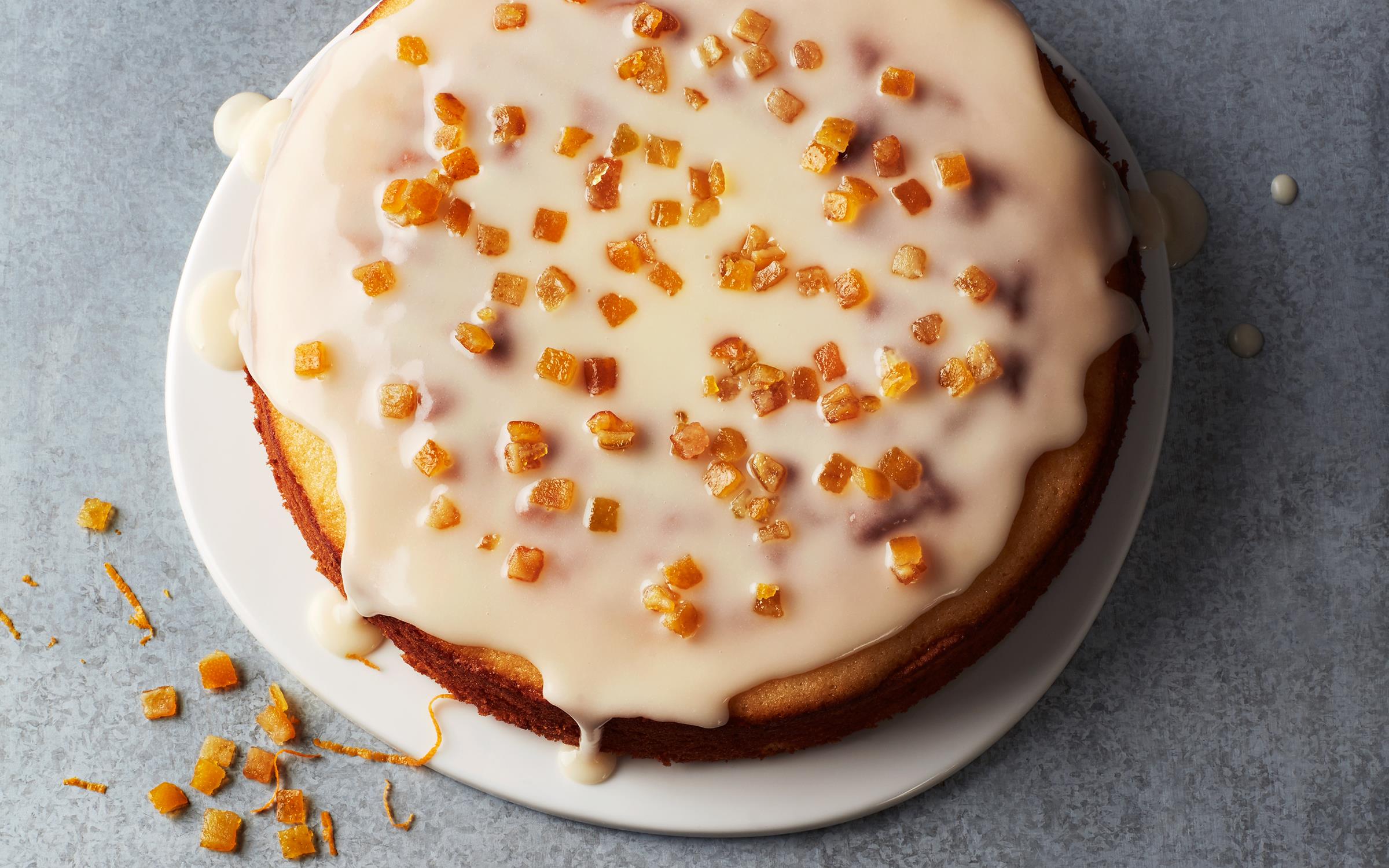 Uppskattad och hållbar kaka som är jätteenkel att baka. Saftig och god med sötsyrlig glasyr och garnerad med syltat apelsinskal.