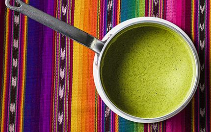 Mole verde är en sås baserad på tomatillo som liknar en tomat, men är släkt med physalis. Använd svenska, lite omogna tomater om du inte får tag på de mexikanska. Den syrliga såsen passar bra till fisk, grönsaker och kyckling.