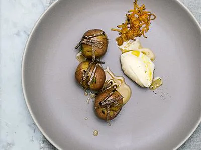 Hörökt apachepotatis med gotlandstryffel och syrad grädde