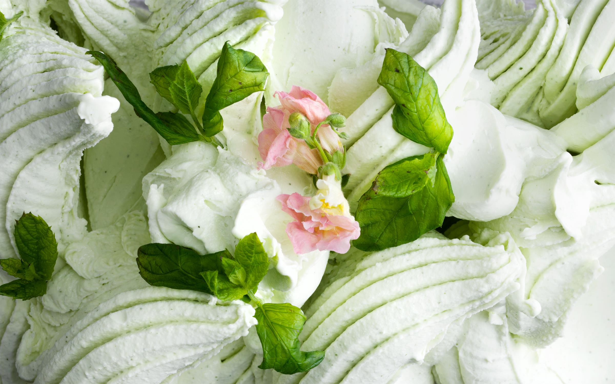 - Tillsätt jilk och frys i gelatomaskin. Ta ur gelatomaskinen, lägg i kantin och chockfrys i 10 min. Garnera med färska myntablad.